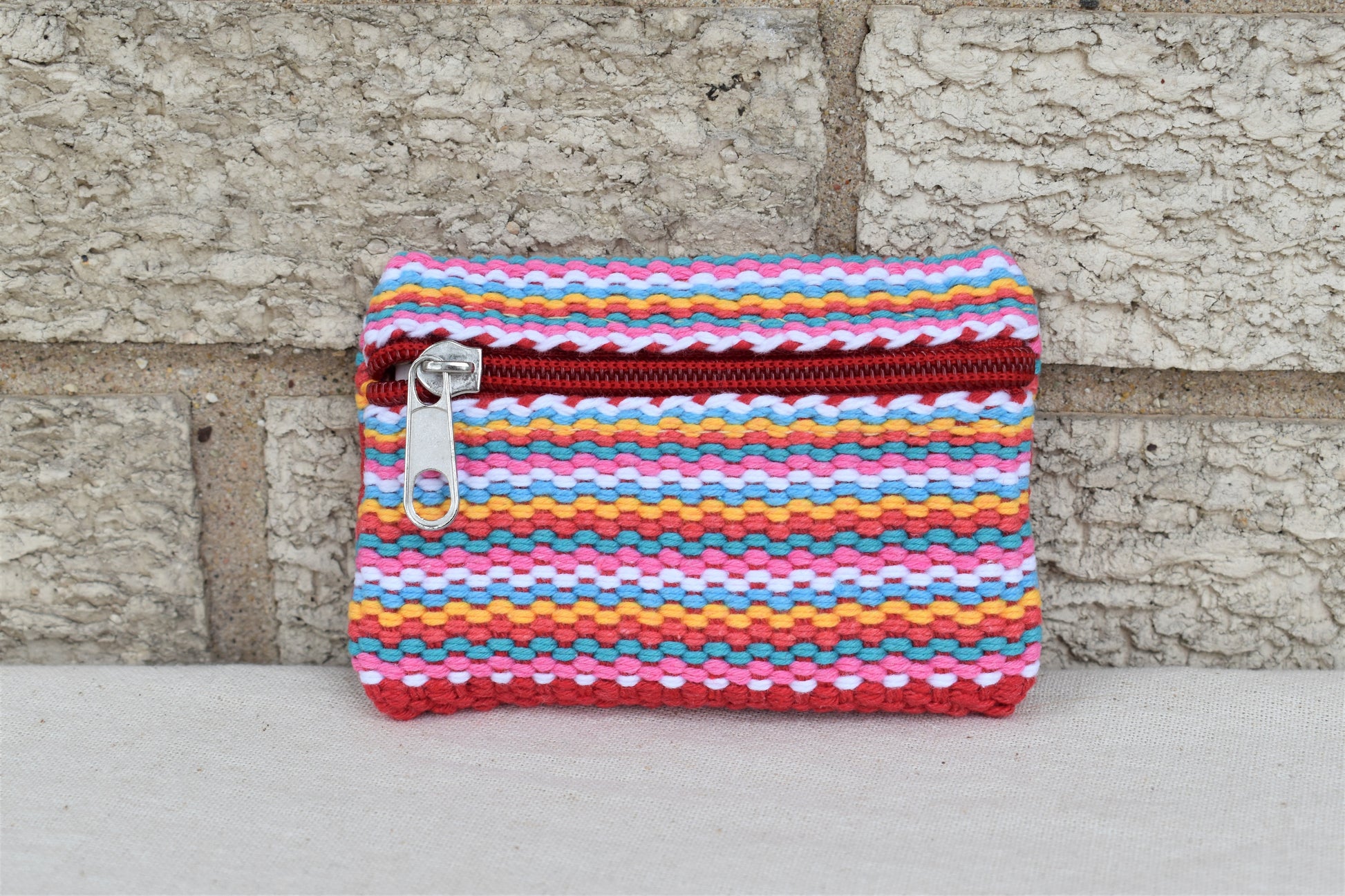 This mini coin purse is crafted with love and precision by artisans in Oaxaca, Mexico. Its vivid colors and intricate patterns make it a stunning accessory to any outfit.